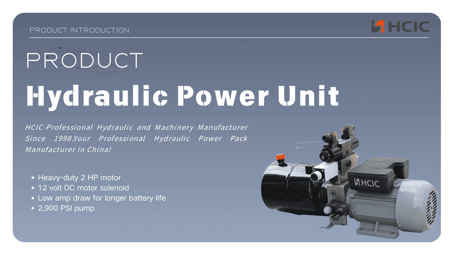 HCIC 12V Hydraulic Power Unit – 2.1cc displacement, 2HP motor, 2900PSI pump, 40lbs ້ໍາຫນັກເບົາ, amp draw ສໍາລັບອາຍຸຫມໍ້ໄຟຍາວ, ທີ່ສົມບູນແບບສໍາລັບລະບົບໄຮໂດຼລິກ DC.